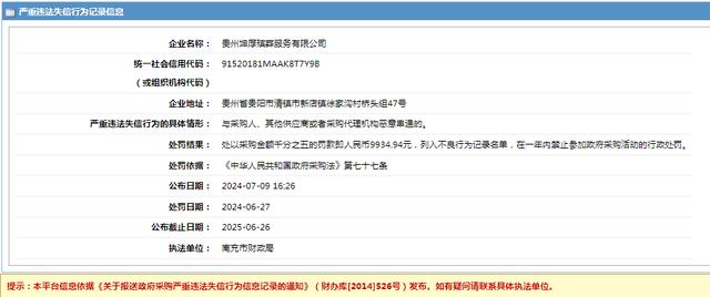 7月9日,根据政府采购网公示,贵州坤厚殡葬服务有限公司与采购人、其他供应商或者采购代理机构恶意串通的。